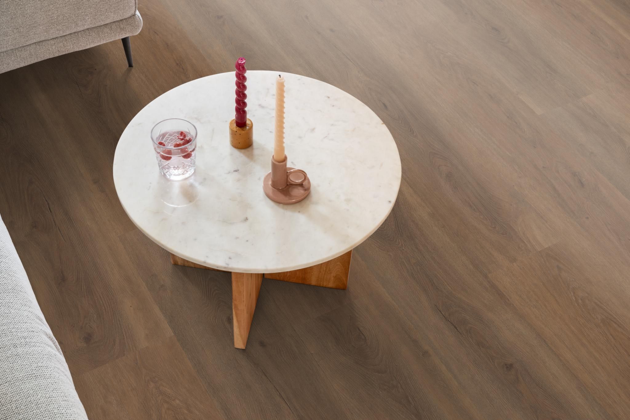 Deze prachtige pvc vloer is te herkennen aan zijn extra brede en lange planken (153 x 25,3 cm). De vloer heeft een natuurgetrouwe structuur die exact de houtprint volgt en heeft daarnaast een subtiele v-groef. Bovendien is deze vloer ook nog eens makkelijk in het onderhoud, ideaal voor drukke huishoudens.